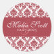 Elegant Maroon White Damask Wedding Favour Classic Round Sticker
