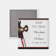 Elegant red and black formal style masquerade themed custom save the date wedding magnets. Personalise with your details.