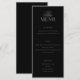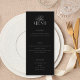 Create your own custom wedding menu cards in a luxurious old money style. Add your wedding food menu in elegant, timeless typography featured here in matte black color design.