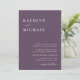 Mauve Purple Modern Typography QR Code All In One Minimalist Wedding Invitation Card. Celebrate your special day with this elegant and beautiful wedding invitation card to beautify your special occasion. All the texts are pre-arranged for you to personalise easily and quickly with your own details. If you need further customisation or matching items, please email alldaybreakfastzazzle@gmail.com – we would love to help.