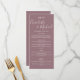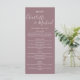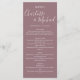 Elegant mauve signature script wedding menu card featuring signature style names, this modern menu card can be personalised with your information in chic white lettering. Designed by Thisisnotme©