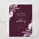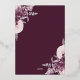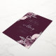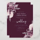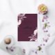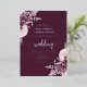 This elegant wedding invitation features mauve floral bouquets set off with silver faux foil greenery in two corners, on a deep mauve background. The customisable text combines real silver foil serif, italic and handwriting fonts. The reverse side features a matching mauve and silver floral design.