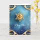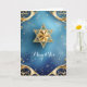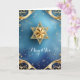 Gold Star of David with exquisite gold details against a blue background; the greeting is "Mazel Tov" on the front. The inside has been left blank for you to personalise this elegant card. Suggested for weddings, birthdays, bar mitzvahs, bat mitzvahs, and other special occasions or holidays.