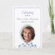 A sweet and elegant folded funeral program adorned with blue and purple meadow flowers.