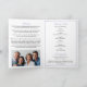 The front features an oval shaped portrait photo, while the inside includes space for the obituary, order of service, and a family photo. The back offers a customisable section for a poem, prayer, or acknowledgement.