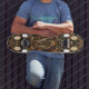 Description: "Baroque Gearworks" is a stunning skateboard deck design from 'The Rococopunk Collection,' artfully merging the opulence of Rococo with the inventive essence of steampunk. The design is adorned with elaborate Rococo patterns and motifs, intricately woven with steampunk elements like gears, cogs, and mechanical parts. The colour scheme is a lavish blend of rich golds, bronzes, and deep browns, enhanced by complex scrollwork. This design stands as a testament to vintage sophistication, where the ornate artistry of the Rococo period meets the mechanical ingenuity of steampunk. It's a perfect harmony of historical elegance and futuristic imagination.