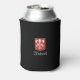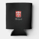 Cool, masculine red black and silver can cooler. Decorated a fleur de lys style graphic and mediaeval style font. Add your/recipient name.