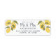 Add a fresh touch to your wedding correspondence with this beautifully designed lemon-themed return address label. Featuring charming lemons with lush green leaves and delicate blossoms, this label exudes Mediterranean-inspired elegance. The names of the future Mr. and Mrs. are displayed in stylish script calligraphy, creating a timeless and sophisticated look. The crisp white background enhances the design, while vibrant lemon-yellow accents add a cheerful touch. Perfect for summer weddings, garden celebrations, or rustic countryside events. Fully customisable to match your wedding details.