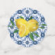 Lemon Wedding table confetti for your lemon and mediterranean blue tile wedding table decor. Personalise it with your names, wedding date and photo. Designed for you by Blackberry Boulevard