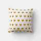 Chic throw pillow with elegant medium gold polka dots on white background.