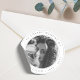 Elegant, chic funeral design to celebrate the memory of your loved one in a modern minimalist design style on a simple clean white background. The design can easily be personalised with your own photo and text to create a special tribute for your loved one's funeral, memorial or celebration of life. The image shown is for illustration purposes only to be replaced with your own photo. The placeholder image is of a beautiful woman with dark curly hair wearing a scarf and is shot in monochrome black and white.