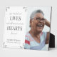 Elegant Memorial Custom Photo White Remembrance plaque. Classy and elegant design to best commemorate the lives of your dearly departed loved ones. This design features vintage flourishes frame and a saying - "You touched our lives, and will remain in our hearts forever!'. There are 2 customisable lines at for you to add the name of the departed and dates.
