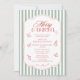 Elegant Merry And Bright Corporate Christmas Party Company Holiday Party Invitations feature simple whimsical red Christmas elements on a green and white striped background with the text "Merry & Bright" in elegant red calligraphy script typography. Stylish, trendy and chic for your corporate Holiday Party. Created by Evco Studio www.zazzle.com/store/evcostudio