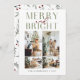 An elegant and chic holiday card featuring a script lettering saying “merry and bright” and four customisable photos at the front with watercolor cherries and leaves pattern at the back. Perfect as a personalised Christmas holiday card to send to your family, friends and loved ones.