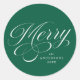 Elegant Merry Calligraphy Script Green Holiday Classic Round Sticker