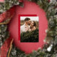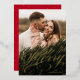 Elegant holiday card featuring your vertical photo with "Merry" displayed in a gold foil calligraphy script overlay. Personalise the front of the gold foil script holiday card by adding your name below. The holiday photo card reverses to a subtle white snow pattern with a red background (or colour of your choice).