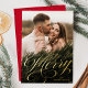 Elegant Merry Calligraphy Script Photo Foil Holiday Card