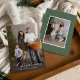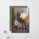 Share heartfelt holiday greetings with this Elegant Calligraphy Merry Christmas 2 Photo Holiday Card. The front design highlights your favourite family photo with “Merry Christmas” displayed in a flowing calligraphy script, paired with your family name below in classic serif lettering. The back of the card features a second photo set against a dark sage green background with a subtle dotted snow pattern. A timeless and elegant way to celebrate the season.