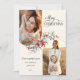 Your holiday photo greeting will make a lasting impression with this unique design featuring two arch-shaped photo templates (vertically orientated works best) with gold borders, a lovely spray of watercolor winter botanicals in red and green, custom "Merry Christmas" text graphic in an elegant flowing calligraphy font and editable text fields on a buff background. The colour of the text graphic can be changed in the design editor. The back features a text field and additional arch photo template.