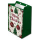 Make your holiday gifts unforgettable with this Elegant Merry Christmas Gift Bag, designed in a classic palette of deep green, festive red ornaments, and a cozy cream background.