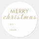 Elegant gold "Merry Christmas" custom to and from names gift Classic Round Sticker.