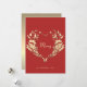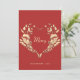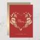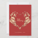 Modern, elegant, simple, beautiful red Merry Christmas greeting card, with rustic gold heart shape wreath.