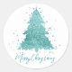 Elegant Merry Christmas | Luxe Aqua Mint Custom Classic Round Sticker