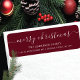 Our festive return address label features Merry Christmas in a modern calligraphy script font set on a red background. It's the perfect way to let your friends and family know where you live during the holiday season. This label is sure to add a touch of holiday cheer to your mail and get noticed by everyone who sees it.