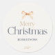 Add a festive touch to your holiday gifts with this elegant “Merry Christmas” sticker. Featuring a watercolor gold bow, modern typography, and customisable family name and year, it’s perfect for sealing holiday cards, gift wrapping, or seasonal party favours.