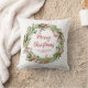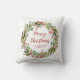 Watercolor red-green berries and branches Christmas wreath family throw pillow. Customisable!