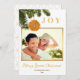 Modern Simple Elegant Gold Citrus Christmas Fresh Lemon orange JOY Photo Holiday Greeting Card. Beautiful green branches with dried lemon orange ornament hanging in a Christmas Cypress Branch. You can customise this fresh card with you own text and photo.