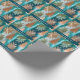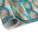 This Christmas wrapping paper has a modern and festive design featuring a rich teal background adorned with metallic appearance pine tree silhouettes. The trees are depicted in various shades, with accents in rose gold, copper, and muted gold, giving the paper a shimmery, sophisticated appearance. The metallic tones add a sense of luxury and elegance, while the contrasting colours bring warmth to the cool teal base. The repeating tree patterns evoke a winter forest, making this wrapping paper perfect for the holiday season, especially under a tree decorated with warm white lights and gold ornaments. Replace the text on the wrapping paper with your own text.