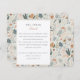Provide your guests with all the particulars they need with our Elegant Mid-Century Wedding Information Card. Adorned with a sophisticated botanical pattern that exudes the charm of the 1950s and 60s, this card blends a serene colour scheme of blush, sage, and warm earth tones with accents of deep teal and charcoal. The use of elegant serif typography for the header and a clean sans-serif for the body text creates a visually striking contrast that is both readable and stylish. This card is perfect for conveying additional wedding details such as directions, ceremony specifics, and gift preferences, ensuring that your guests are well-prepared for your big day. With its chic design and thoughtful layout, this information card is a lovely addition to your wedding invitation suite.