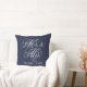 Elegant square accent pillow for happy couples and newlyweds features a white script Mr. and Mrs. design with custom monogram text that can be personalised with the married last name. The dark midnight blue background colour can be customised to coordinate with your home or bedroom decor colours.