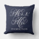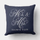 Elegant Midnight Mr and Mrs Script Custom Monogram Cushion
