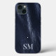 Elegant Minimal Blue Leather Monogram Initials Case-Mate iPhone Case
