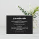 Elevate your modern and stylish wedding with our stunning guest details enclosure card. The gorgeous bold white calligraphy and classic lettering on a black background make it a perfect choice for formal weddings. You can also change the colours of the text and background to match your theme. Don't miss out on adding this elegant touch to your special day and informing your guests of what's to come. Order today!
