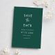 Striking and luxurious, this Emerald Green Wedding Save the Date card features a minimalist aesthetic, effortlessly combining sophistication and style. The richness of trendy emerald green provides a backdrop that's both eye-catching and timeless. The simple yet refined modern typography creates a perfect blend of traditional and contemporary. Ideal for creating a formal, high end wedding atmosphere. Use the Design Tool to customise background colour, text font, size and placement to your liking. For matching items, visit the Emerald Green Modern Minimal Wedding invitations collection.