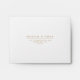 Make your wedding planning effortless with this elegant, minimalist gold and white RSVP envelope, designed to elevate your wedding stationery. Featuring luxurious gold text and a simple, sophisticated return address, this RSVP envelope brings timeless style to your event. Perfect for couples seeking a refined look, these envelopes create a memorable first impression with a white exterior and a beautifully contrasting gold interior.