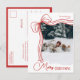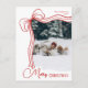 An elegant and minimal family photo Christmas postcard featuring a whimsical hand-drawn red and white bow and script font. This modern holiday card in simple yet festive color palette is perfect for sharing warm season’s greetings, Merry Christmas wishes, and custom holiday messages with friends and family in style.