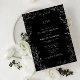 The invitation features an intricate leafy line art motif framing your special invitation details, where you feature the couples' initials in a beautifully crafted monogram. A hand lettered calligraphy font adds an elegant touch that will bring the whole look together, in a timeless colour combo of black and bright white.