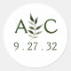 Elegant Minimal Leaves Frame Green Olive Initials Classic Round Sticker