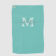 Elegant Minimal Name and Monogram Teal Golf Towel