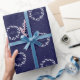 Elegant Minimal Navy Blue Christmas Holly Wreath Wrapping Paper