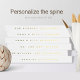 Elegant wedding guest book in a sleek, modern, and minimal design with smooth velvety white hardcover and real foil details in the foil colour of your choice. Foil in gold, silver, or rose gold. Design with the ability to add any text you like on the front, spine/side, and back. If you prefer the back without any text, please leave their corresponding template text boxes blank.