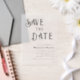 Elegant Minimal Script Save The Date Wedding Vellum Invitations are modern and unique to use as a overlay or send as a card to your guest. Personalise with your information.