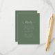 A refined enclosure card with a minimal layout that brings a soft, elevated touch to your wedding suite, offering a graceful way to share essential event information while keeping the overall presentation timeless and cohesive. The lush green color featured reflects a coastal aesthetic that is perfect for destination weddings! Personalize in a variety of ways to make your wedding suite truly your own.