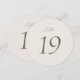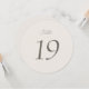 This elegant minimalist round wedding table number features refined script typography and a modern luxury design, perfect for sophisticated wedding receptions. The clean neutral palette and timeless layout complement a wide range of wedding styles, including fine art weddings, estate celebrations, garden ceremonies, and black-tie receptions.
