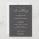 Elegant Minimalist Almond Grey Wedding Invitation designed on a grey background with soft neutral almond shade text. The front text includes: The Bride and Groom's Names, Wedding Date, Time, Location, Address and Reception Details. The reverse side text includes: your RSVP Details and Reply-By Date in grey text on a neutral almond shade background. To personalise, simply insert your event text into our easy template, replacing the sample. This invitation is available in both Print and Download, and does not require a separate RSVP Card.
