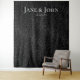 Elegant and minimalist wedding photo wall backdrop featuring a sophisticated black leopard print pattern on black background. Silver typography for newlyweds names and wedding date. Created for the bold, stylish, fierce and daring couple who love big cats, especially pumas and panthers.